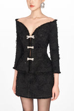 Black Crystal Beaded Mini Skirt
