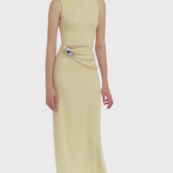 Beige Asymmetrical Wrap Maxi Skirt