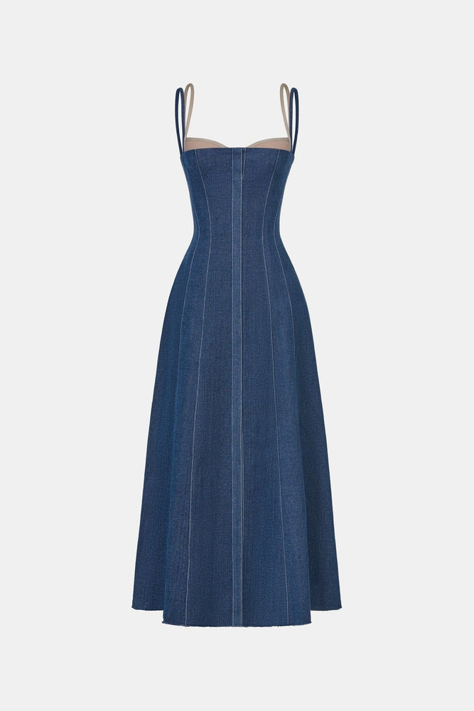 Denim Blue Corset Midi Dress